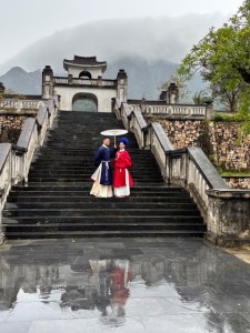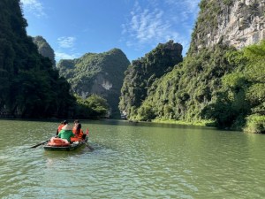 Trang An was the next tour destination and it’s a landscape of lakes, tunnels and rugged bluffs that we explored in canoes, paddled by locals. I did some paddling also, which might have helped our canoe captain. Not sure. I did it because I find it hard to sit still.