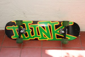 But this photograph could make a difference. This is not the stolen skateboard. But it’s a duplicate they made for me at Sk8box. So if you see this skateboard anywhere near Normal Heights, and it’s not being used by my family, let me know. Remember the green wheels.