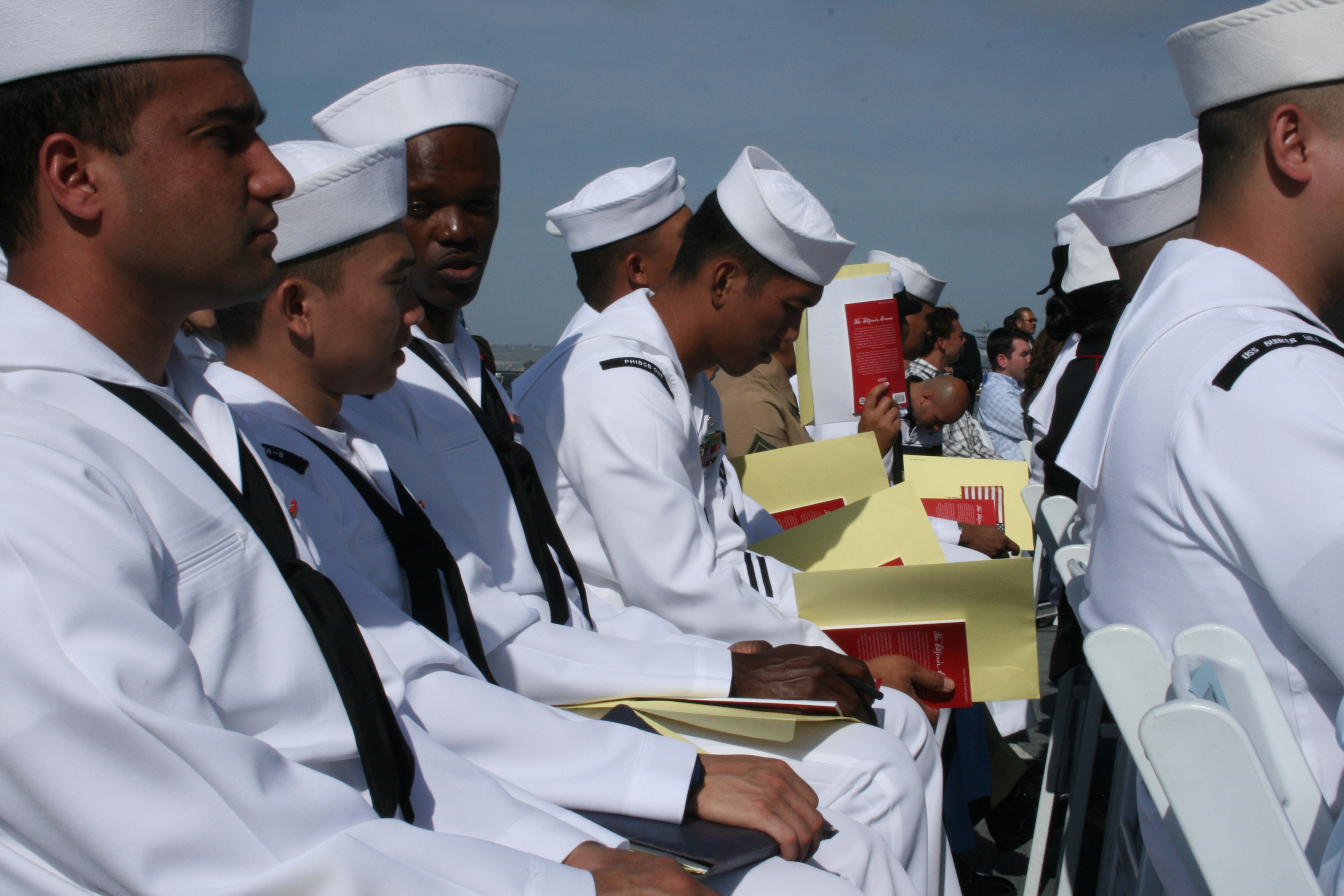 Last Friday I was on the deck of the decommissioned USS Midway in San Diego bay to see about 90 sailors and marines take the oath of citizenship. The Navy Band Southwest performed and four sailors paraded the colors. The ceremony was rich in military tradition but it was also a picture of a changing America that lots of people find unsettling.