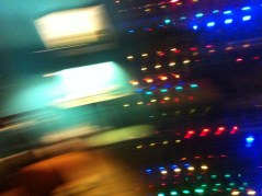 One house decorates its roofline with fake icicles that appear to be melting as electric light drips off their manufactured ends. There’s an inflatable Santa in a hot-air balloon. There are glittery reindeer with bobbing heads and an elfin rock band wearing dark glasses.