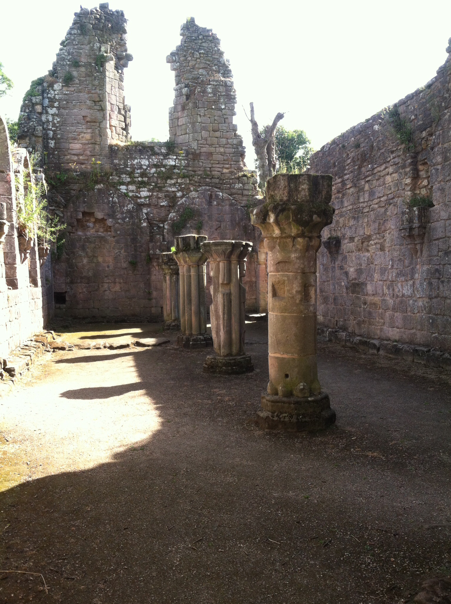 Since the monks left the church and its adjacent complex of buildings, the elements have sculpted them into something much more wonderful than they ever were. Lovingly preserved, it would just be another Gothic cathedral. Left a ruin, the arches and walls of gray stone meet the bright green grass below and your view strides from one to the other. The lack of a roof lets in the sky. The bare, broad windows let in the forest. It’s part cubist, part Gothic and wonder of erosion.