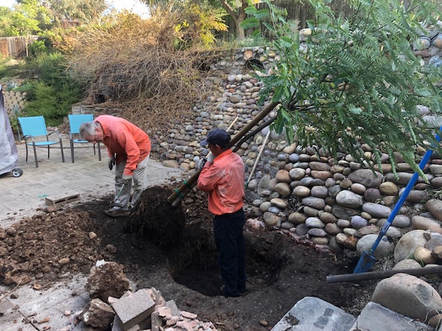 Ted and assistant ready to plant the Tipu